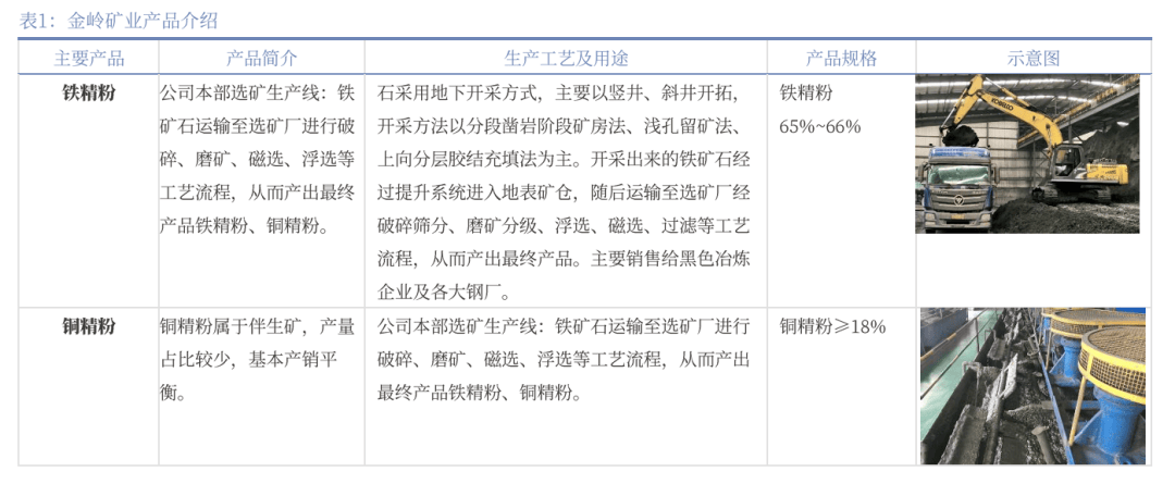 核心产品铁精粉市场认可度较高,球团矿生产工序完善。公司的主要产品铁精粉主要销售给黑色冶炼企业及各大钢厂,铜精粉属于副产品,产量占比较少,基本产销平衡。公司作为国内以铁矿石采选为主营业务的上市公司,拥有优质铁矿石资源,属于国内富矿之一,主要产品为磁性铁精粉,曾获得国家同类产品唯一“金质奖章”,其不仅品位高,且硫(S)、磷(P)、二氧化硅(SiO2)、二氧化钛(TiO2)等有害元素含量低,因此产品市场认可度高,销路畅通。公司铁精粉铁含量基本在65%左右,含硫、磷等杂质低,主要作为钢厂的原料。公司下属单位机械制造厂所生产的铲运机、破碎机、矿车、罐笼等设备主要用于自用、国内各规模矿山企业,公司球团矿品位63±3%,主要销售给黑色冶炼企业及各大钢厂,用于高炉冶炼。公司铁矿石采用地下开采方式,主要以竖井、斜井开拓,开采方法以分段凿岩阶段矿房法、浅孔留矿法、上向分层胶结充填法为主。开采出来的铁矿石经过提升系统进入地表矿仓,随后运输至选矿厂经破碎筛分、磨矿分级、浮选、磁选、过滤等工艺流程,从而产出最终产品。公司产品球团矿主要原材料为铁精粉和若干添加剂,主要工序包括配料、混合料预处理、造球、筛分布料、干燥预热、焙烧、冷却、成品球团矿输送储存等工序。辅助工序包括煤粉制备、主抽循环风机等抽风系统、多管除尘静电除尘等除尘系统、烟气脱硫系统等。
