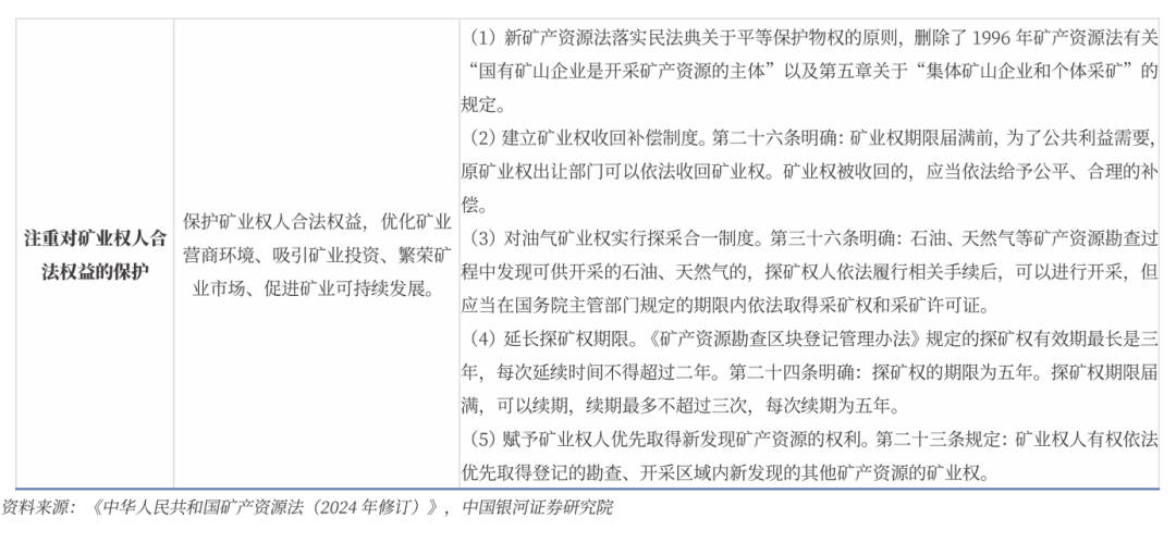 新矿产资源法出台,推动战略性矿产资源增储提产:2024年11月8日,《中华人民共和国矿产资源法(修订草案)》(简称“新矿产资源法”)经十四届全国人大常委会第十二次会议审议通过,自2025年7月1日起施行。新矿产资源法明确加大对战略性矿产资源勘查、开采、贸易、储备等的支持力度,推动战略性矿产资源增加储量和提高产能,推动战略性矿产资源产业优化升级。新矿产资源法有利于鼓励矿业投资、发展矿业新质生产力,助力公司发挥资金优势,增存提产,提升资源竞争力。