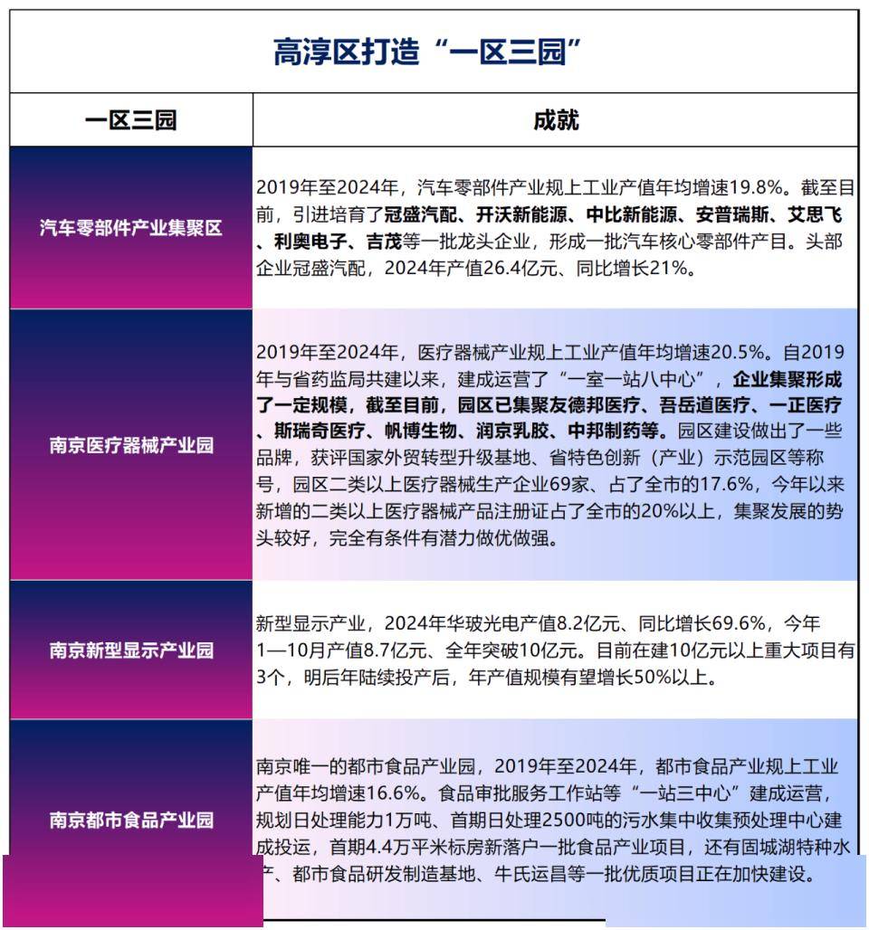 这种策略之下,高淳锚定了四大产业:汽车零配件、医疗器械、新型显示、都市食品。